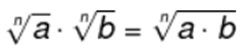 A propriedade 3 afirma que o produto entre duas raízes com índices iguais é igual à raiz de mesmo índice do produto dos radicandos.
