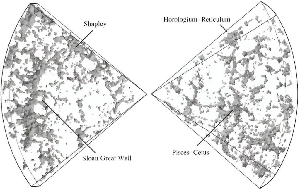 Um grupo, liderado pelo astrônomo R. Brent Tully, da Universidade do Havaí, mediu os movimentos de cerca de 56.000 galáxias para entender essas bacias e sua distribuição no espaço. “Nosso universo é como uma teia gigante, com galáxias ao longo de filamentos e agrupadas em nós onde as forças gravitacionais as unem”, disse Tully.