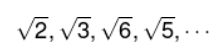 As raízes quadradas de números que não são quadrados perfeitos.