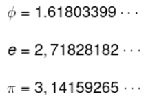 Constantes provenientes de razões especiais, como número de ouro, número de Euler ou Pi."