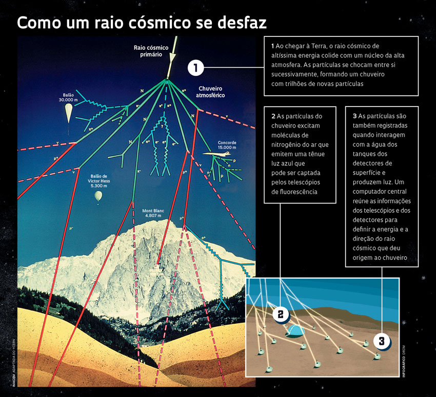 DE FORA Em um trabalho que levou 12 anos para ser concluído, um grupo internacional de pesquisadores, com participação brasileira, descobriu que esses super-raios cósmicos são gerados além da nossa galáxia, ou seja, no espaço extragaláctico — a milhões de anos-luz da Terra.