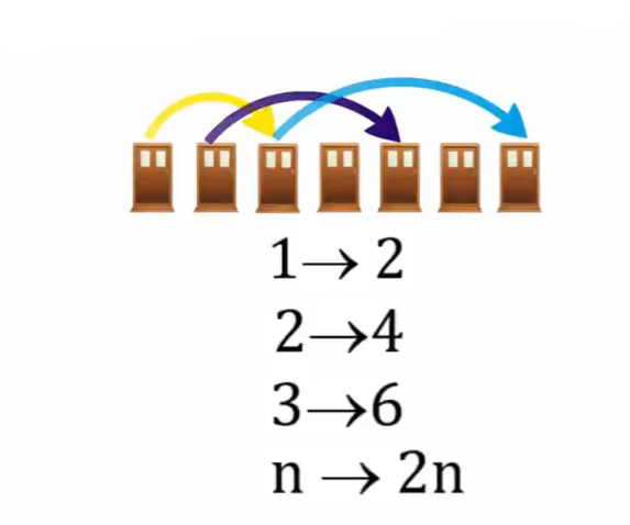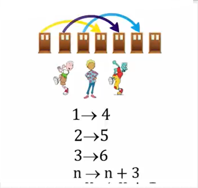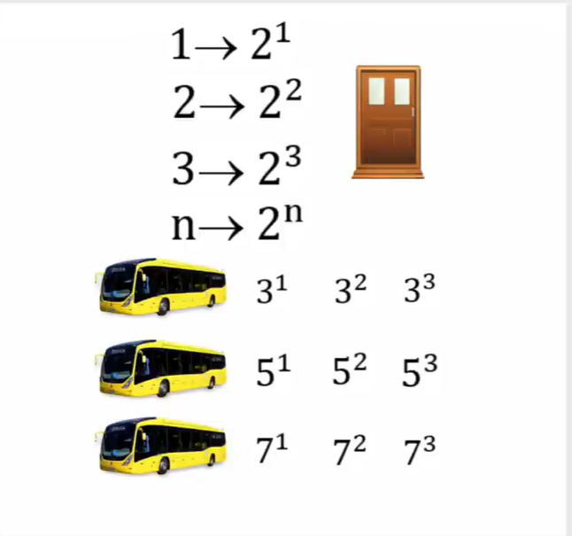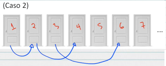 Com isso, todos os quartos de número ímpar ficam vagos. Assim, o primeiro passageiro do ônibus vai para o quarto 1, o segundo para o quarto 3, o terceiro para o quarto 5, e assim por diante.