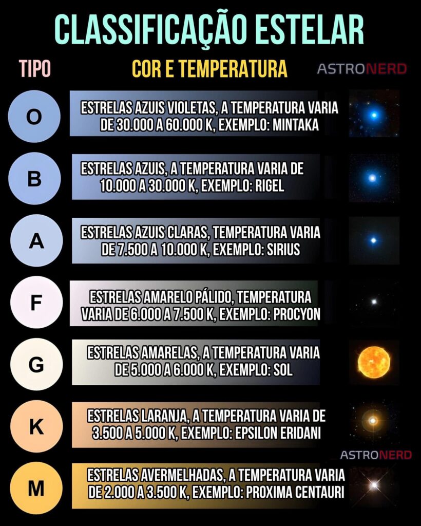 ☀️ Existem três fatores para classificar estrelas: classe espectral, cor e magnitude absoluta.