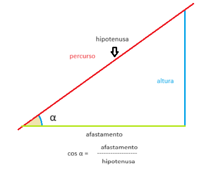 “Cosseno: De forma semelhante ao seno, o cosseno é definido em uma rampa como a razão entre o afastamento em relação ao solo e o comprimento da rampa.”