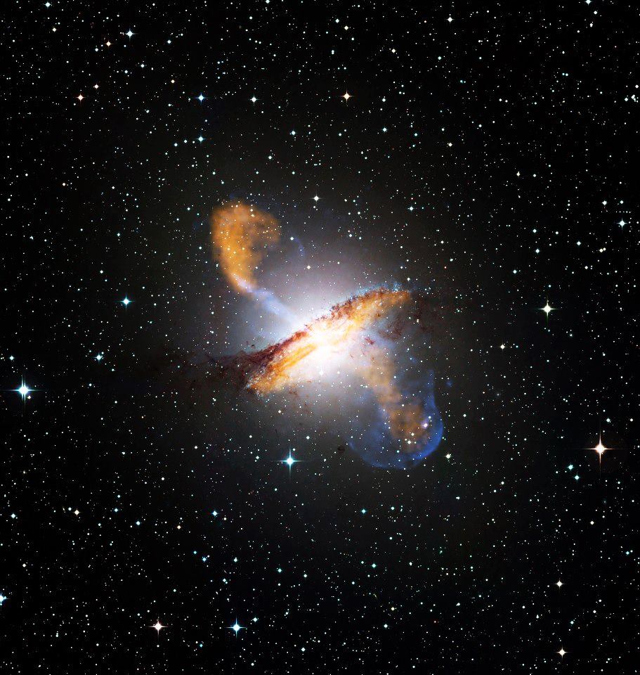 Este é um composto de imagens obtidas com três instrumentos, operando em diferentes comprimentos de onda. Os dados submilimétricos 870 mícrons, de LABOCA em APEX, são mostrados em laranja. Dados de raios-X do Observatório de raios-X do Chandra são mostrados em azul. Dados de luz visível do instrumento Wide Field Imager (WFI) no MPG / ESO de 2,2 m telescópio localizado em La Silla, Chile, mostra as estrelas e característica pista poeira da galáxia.