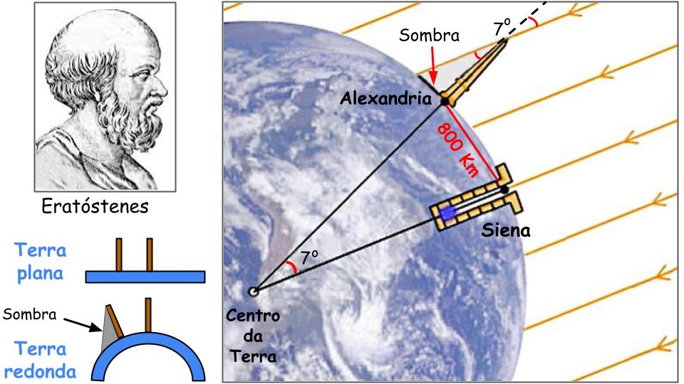 Erastótenes contratou um homem para percorrer a distância entre as duas cidades, sabendo que elas estavam separadas por 5.000 estádios (785 km).